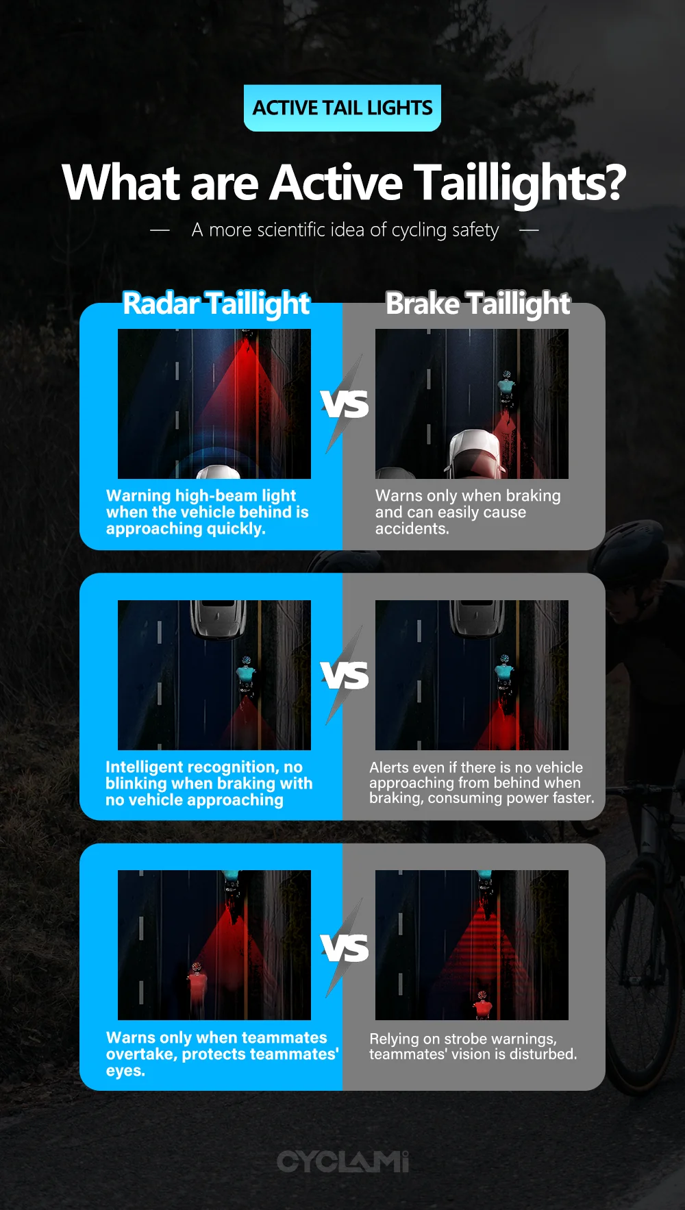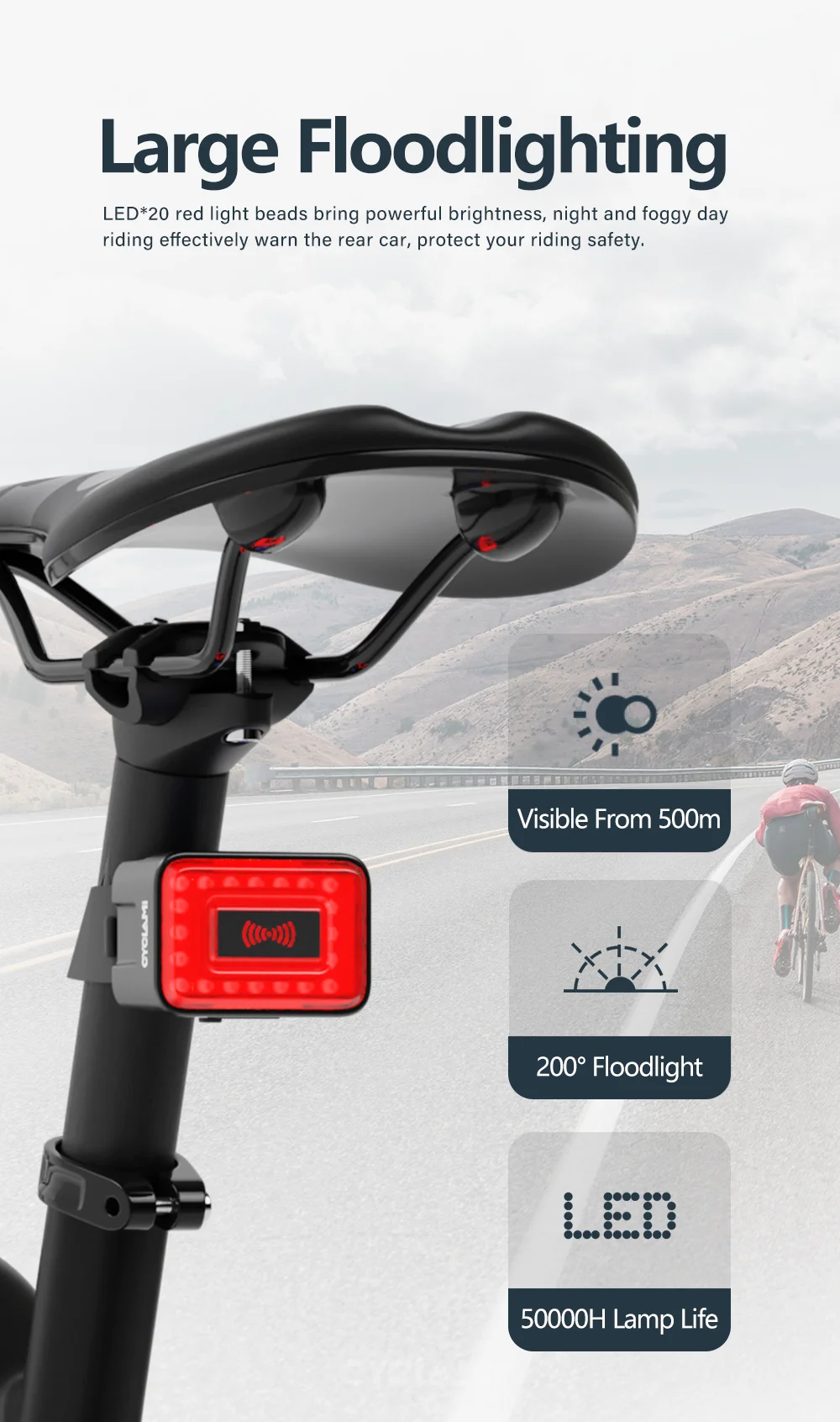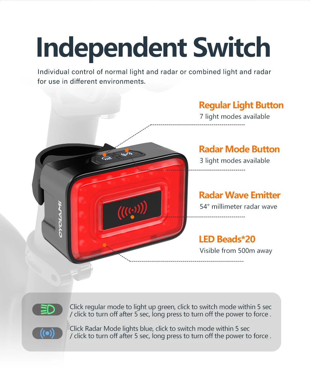CYCLAMi Bicycle Radar Taillight Intelligent Sensing Warning Safety Light High Sensitivity and Brightness Red Light 24GHz IPX6